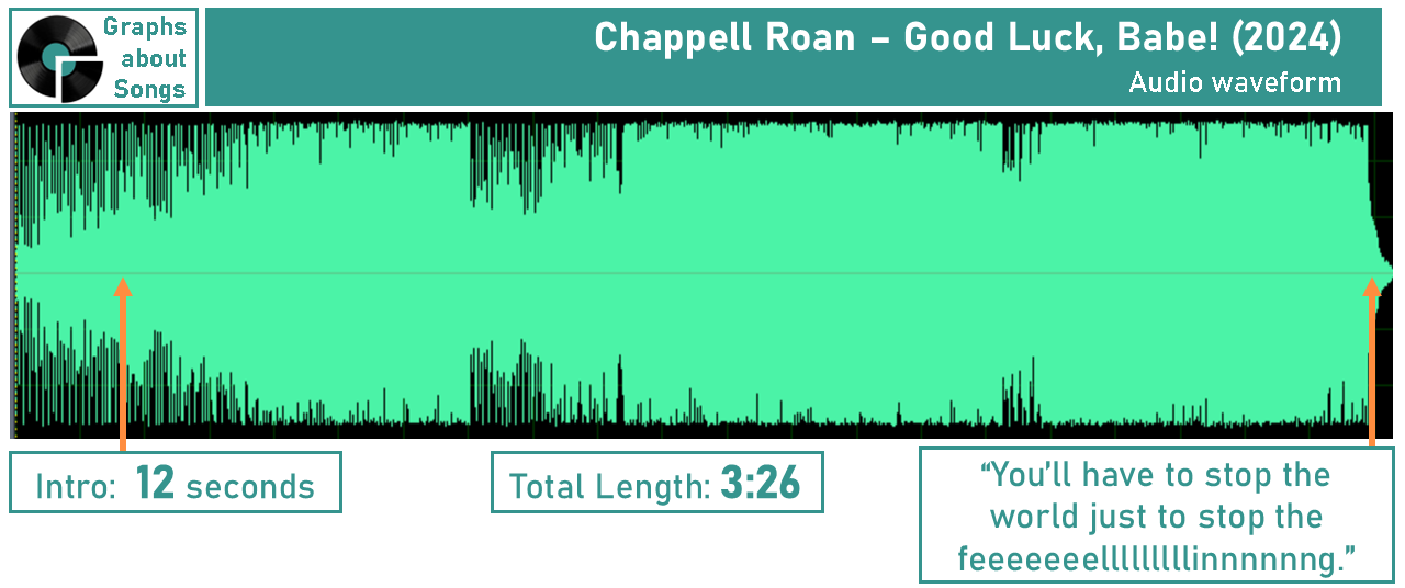 Finally, there’s Chappell Roan’s debut hit “Good Luck, Babe!” It does have a luxuriously long 15 second intro by today’s standards. Instead of yesterday’s fade out, Roan slows the song like a record player losing power to accentuate the lyrics: