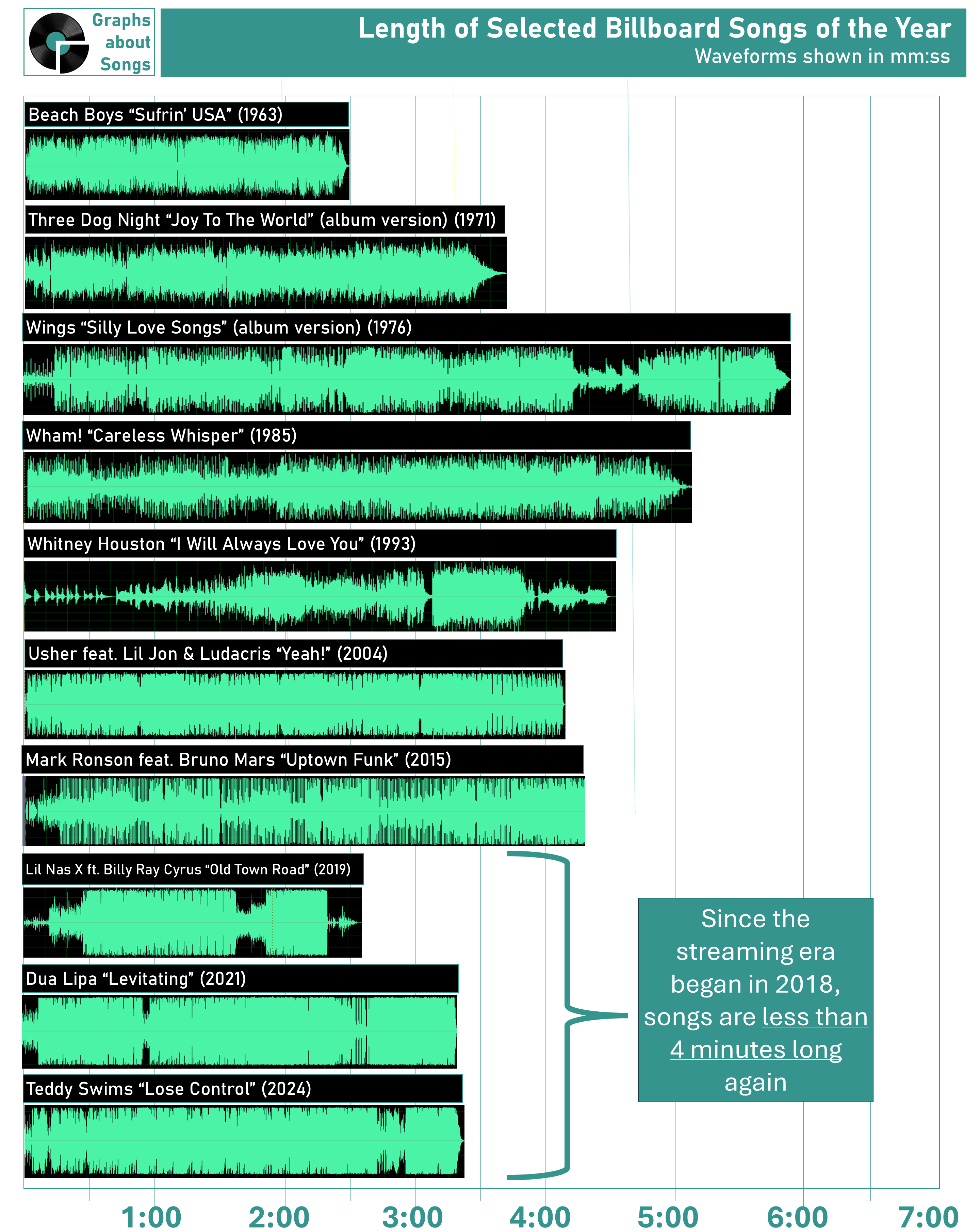 Here’s a selection of Billboard Songs of the Year selections: to illustrate how long a hot song could be.